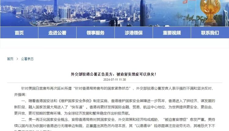 ہا نگ کا نگ (نمائندہ خصوصی) ہانگ کانگ میں چینی وزارت خارجہ کے کمشنر آفس نے ایک بیان جاری کیا۔ امریکی وائٹ ہاؤس کی جانب سے ہانگ کانگ کی صورتحال کے تناظر میں اعلان کردہ نام نہاد ہنگامی حالت میں ایک اور توسیع کے جواب میں ، ہانگ کانگ میں چینی وزارت خارجہ کے کمشنر آفس کے ترجمان نے سخت عدم اطمینان اور مخالفت کا اظہار کیا اور اس بات پر زور دیا کہ امریکہ نے بار بار قومی سلامتی کے بہانے دعویٰ کیا ہے کہ ہانگ کانگ کی صورتحال امریکی قومی سلامتی ، خارجہ پالیسی اور معیشت کے لئے خطرہ ہے۔