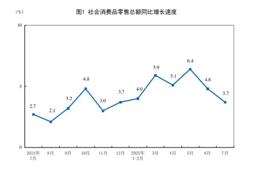 جنوری سے جولائی تک صارفین کی اشیاء کی مجموعی خوردہ فروخت 28.42 ٹریلین یوآن رہی جو سال بہ سال 4.8 فیصد اضافہ ہے، خدمات کی خوردہ فروخت میں  5.2 فیصد اضافہ ہوا اور اشیاء اور خدمات کی مشترکہ خوردہ فروخت میں سال بہ سال تقریباً 5 فیصد اضافہ ہوا ہے