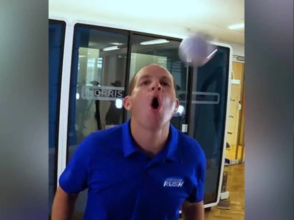 سیریل گینیز ورلڈ ریکارڈ بریکر ڈیوڈ رش نے 30 سیکنڈ میں 51 بار منہ سے ٹیبل ٹینس کی گیندیں دیوار پر مار کر اپنا ہی ریکارڈ توڑ دیا۔